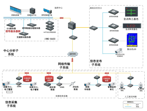 在滿足誘導引擎要求的布點原則和數據格式的條件下,可充分利用已經建設的卡口、卡口型電子警察端點位提供的數據構建城市交通誘導系統,系統投資小,性價比高。